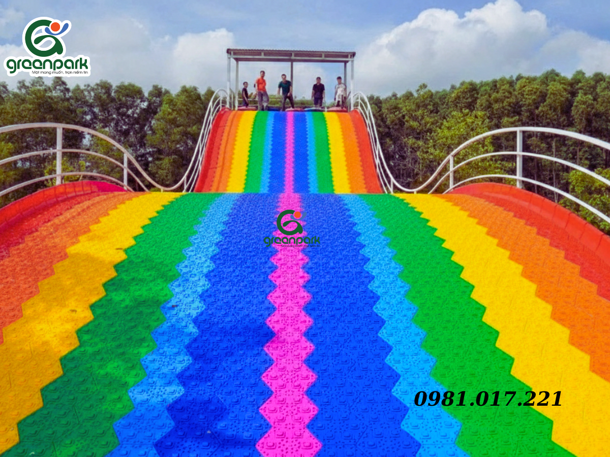 Cầu trượt cầu vồng – cầu trượt phao GP02010 là mẫu đường trượt cầu vồng được thiết kế theo dạng bản rộng, độ dốc rõ ràng, cho phép nhiều trẻ cùng tham gia trong một lượt chơi. Thiết kế này tạo nên cảm giác sôi động, náo nhiệt, rất phù hợp với các khu vui chơi trẻ em ngoài trời cần không khí vui tươi và thu hút đông người.