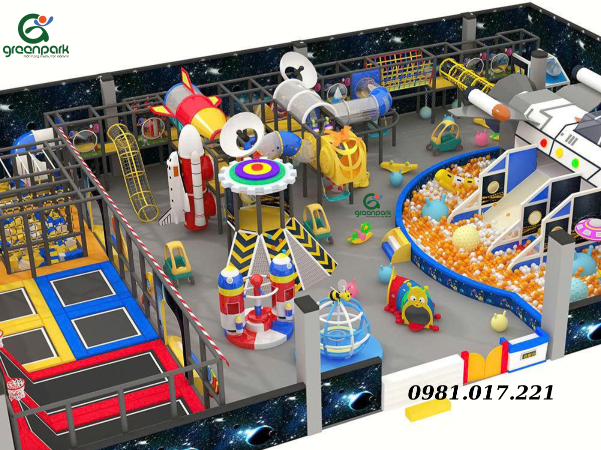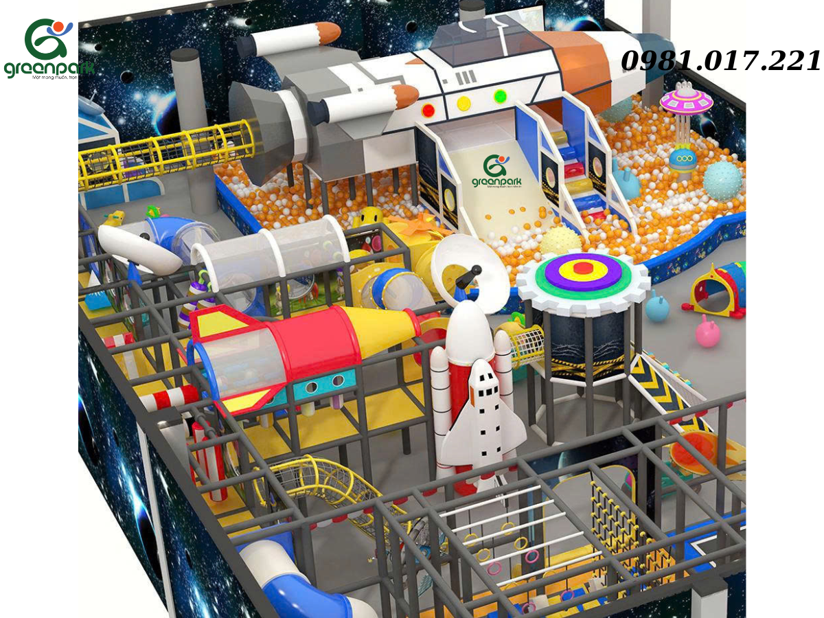 Khu vui chơi trẻ em trong nhà GP01202 được thiết kế theo phong cách vũ trụ – du hành không gian, mang đến không gian vui chơi hiện đại, năng động và giàu tính khám phá cho trẻ nhỏ. Thiết kế bố cục mở, liên hoàn giúp trẻ dễ dàng di chuyển, trải nghiệm nhiều trò chơi trong cùng một không gian an toàn và tiện nghi.